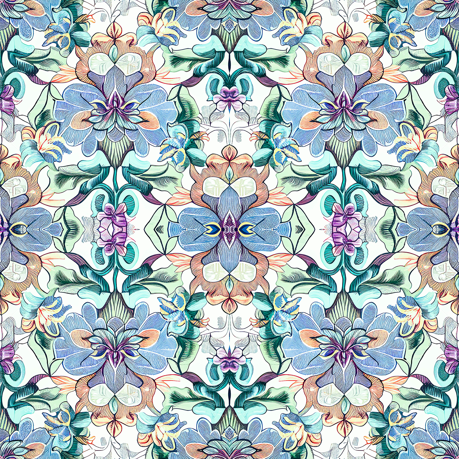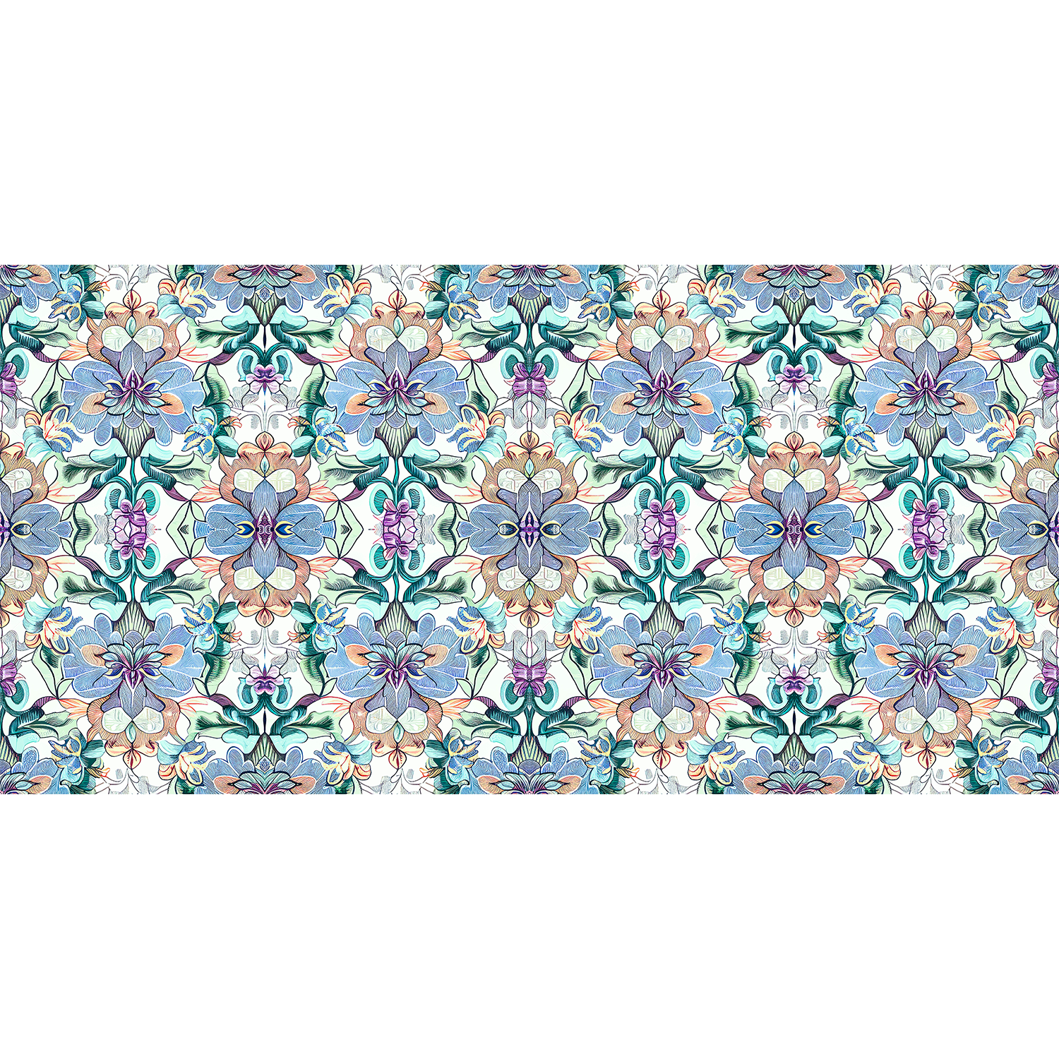 Blackberry Mountain features a stunning all-over pattern that showcases the beauty of wildflowers in bloom. The intricate detailing of the pattern creates a kaleidoscope effect that is both mesmerizing and delightful. Also available as wallpaper.