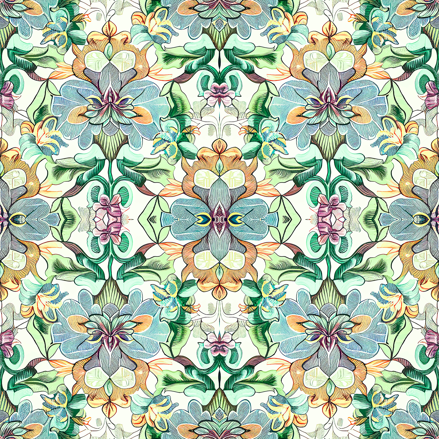 Blackberry Mountain features a stunning all-over pattern that showcases the beauty of wildflowers in bloom. The intricate detailing of the pattern creates a kaleidoscope effect that is both mesmerizing and delightful. Also available as wallpaper.