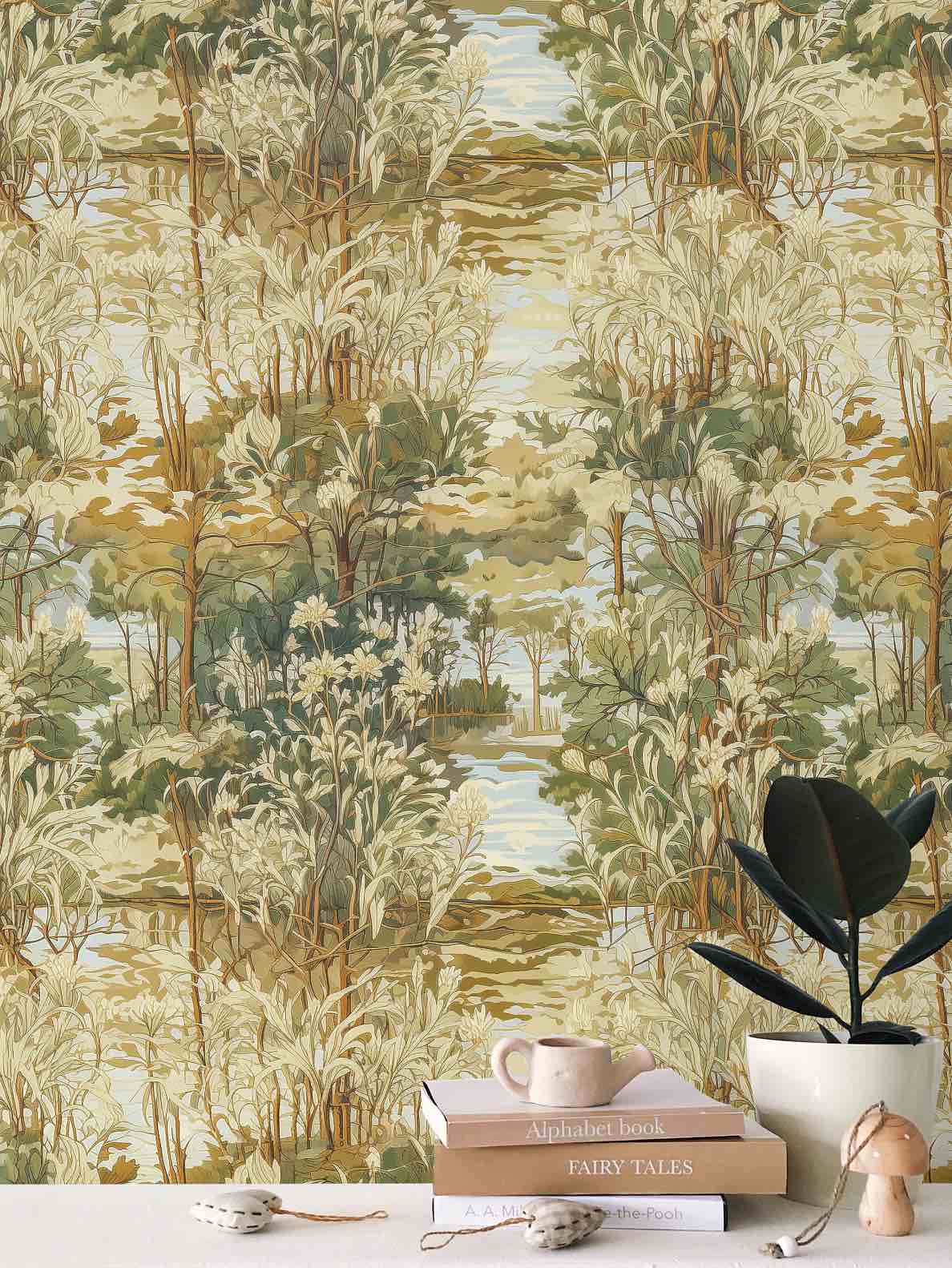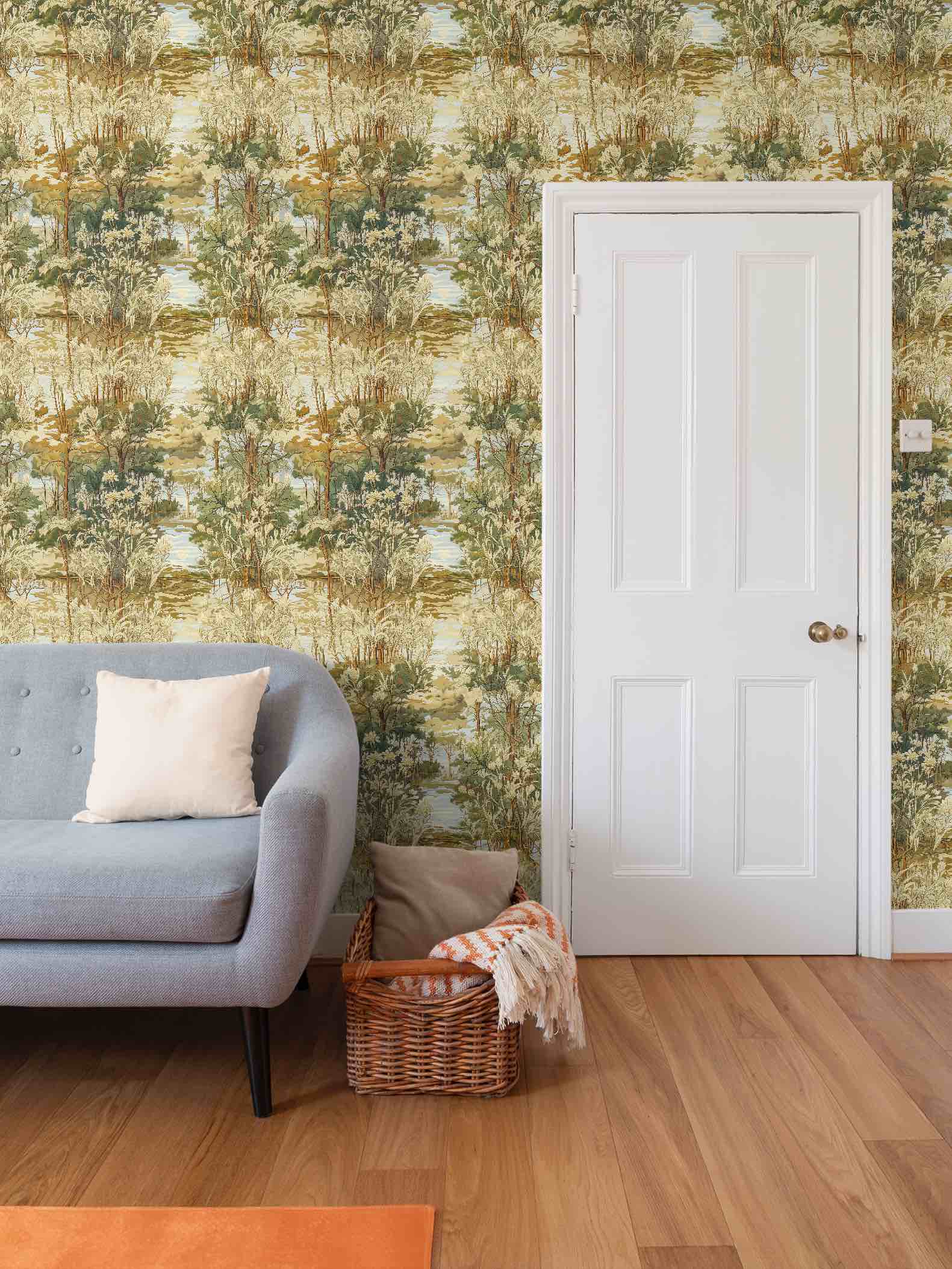 Okefenokee Loden pre-pasted removable wallpaper is handmade to order by artisans right here in the US. Our bespoke wallpapers typically ship within 7-10 business days (this includes samples).