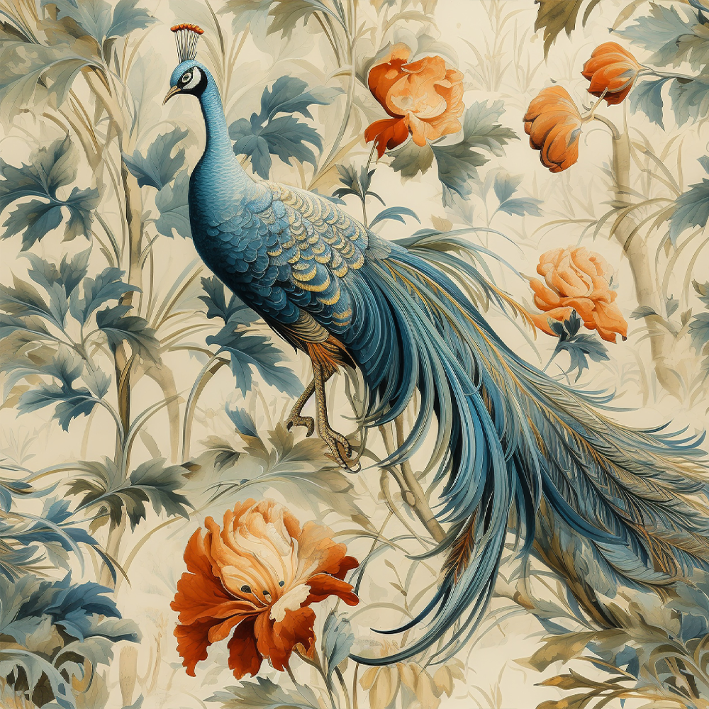 Introducing Paon IndieneTurquoise, an original fabric design by William West Designs. Inspired by the majestic beauty of peacocks (Indian Peafowl), this fabric design captures the vibrant plumage and striking iridescent colors that make these birds so captivating.