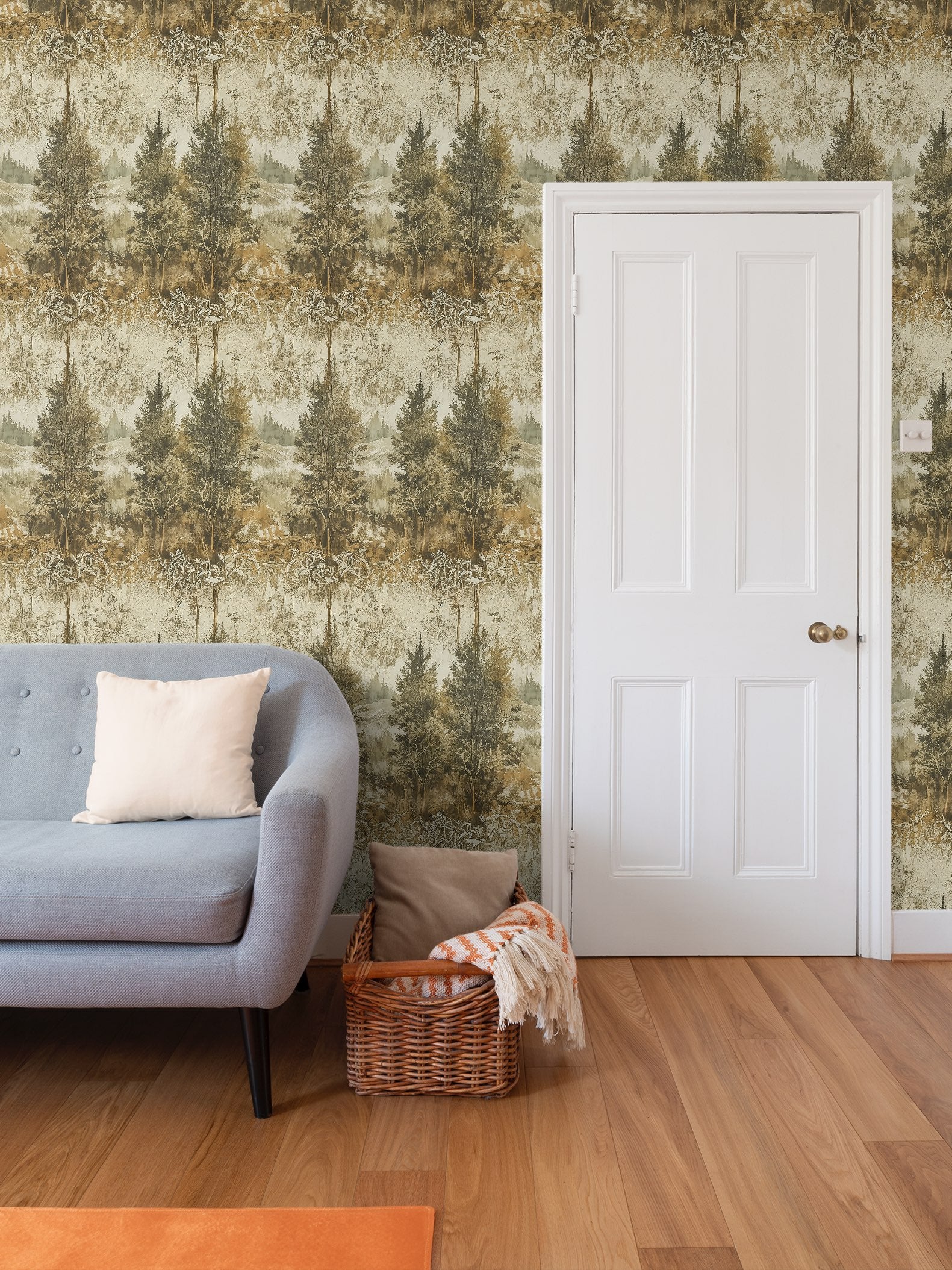 Okefenokee Loden pre-pasted removable wallpaper is handmade to order by artisans right here in the US. Our bespoke wallpapers typically ship within 7-10 business days (this includes samples).